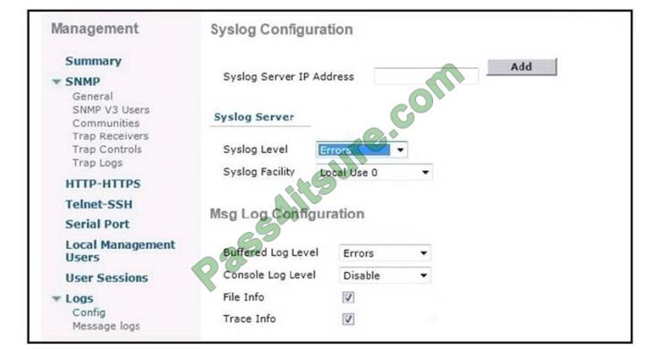 Refer to the exhibit. Which level message does the WLC send to the syslog server?